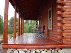 Perhaps the appearance of the porch with its dramatic covering catches the eye first. This specialty porch sends out an invitation to pull up a rocking chair and savor the mountain views. The 36' X 8' covered cedar porch is meant to be used all year round. Enjoy the 6' X 24' back porch with it's warm southern exposure.