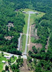 ![]() Aerial view of 105 acre estate. Log home located on left just less than 1/2 way down runway.